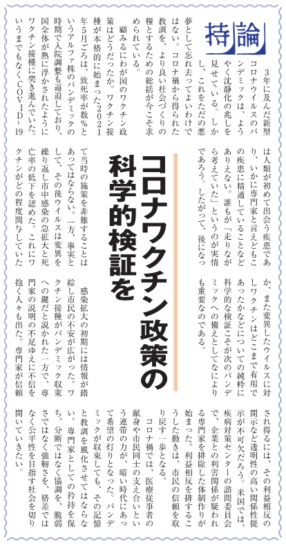 コロナワクチン政策の科学的検証を