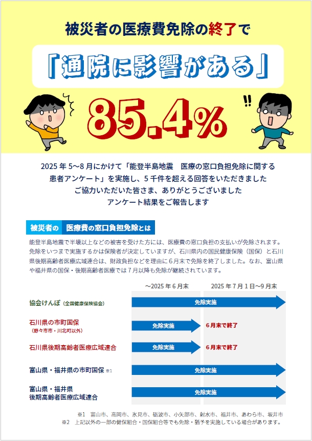 能登地震 医療費免除打ち切りで受診抑制が起こるのは必至(アンケート最終報告)